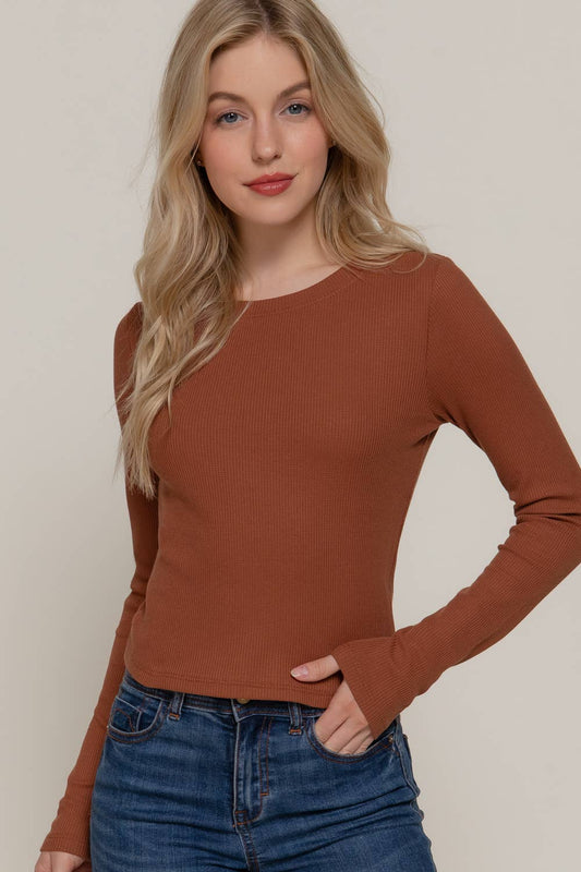 Long Sleeve Crew Neck Thermal Crop Knit Top