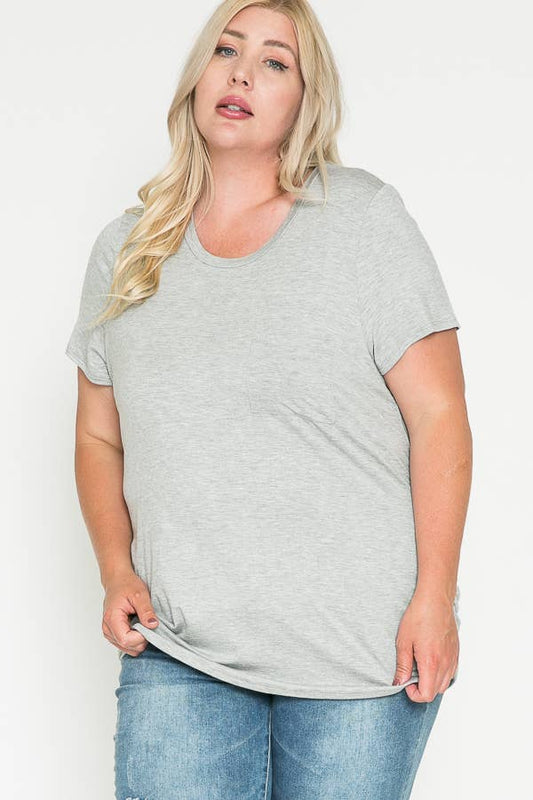 Plus Size Round Neck Solid Basic Side Shirring Blouse Top