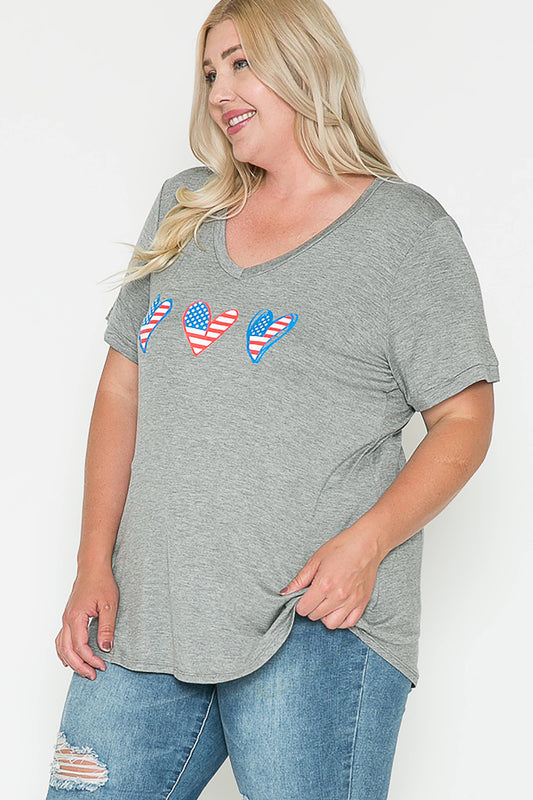Plus Size 3 Heart Shape U.S. Flag Graphic T