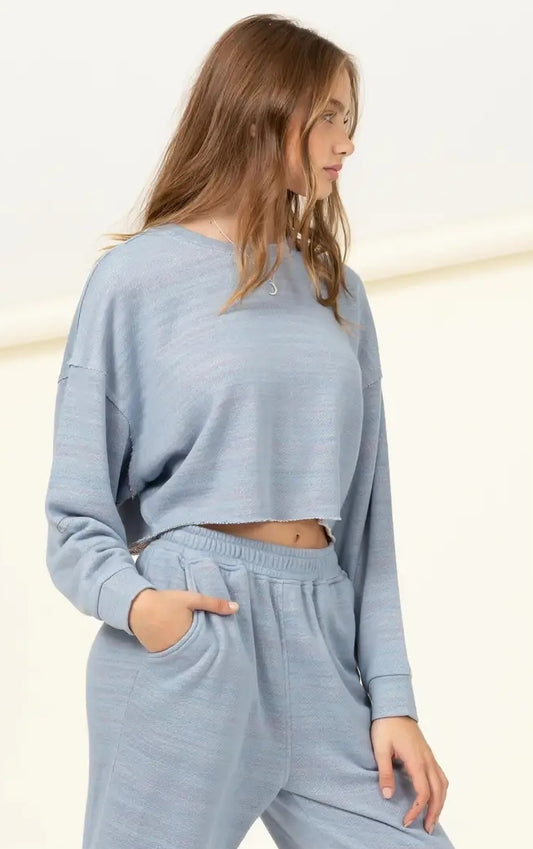 Dusty Blue Dropped Shoulder Crop Top