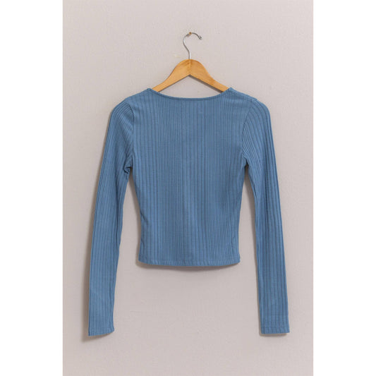 Blue Ribbed Button-Front Top