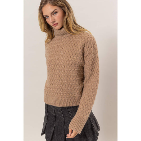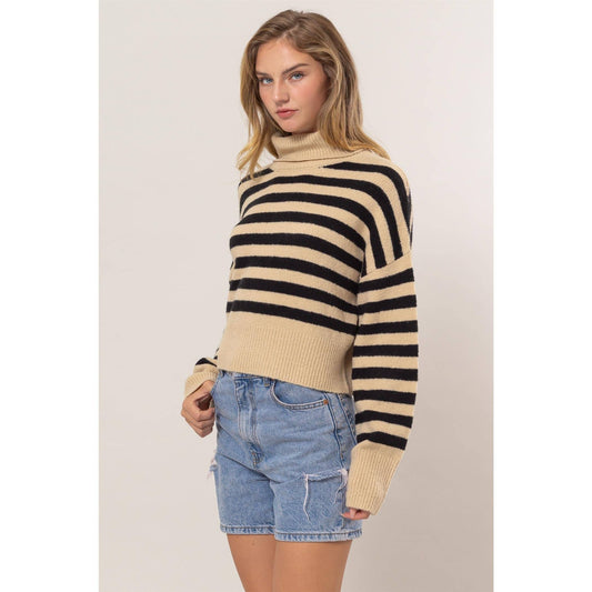 Striped Turtleneck Sweater: TAUPE/BLACK