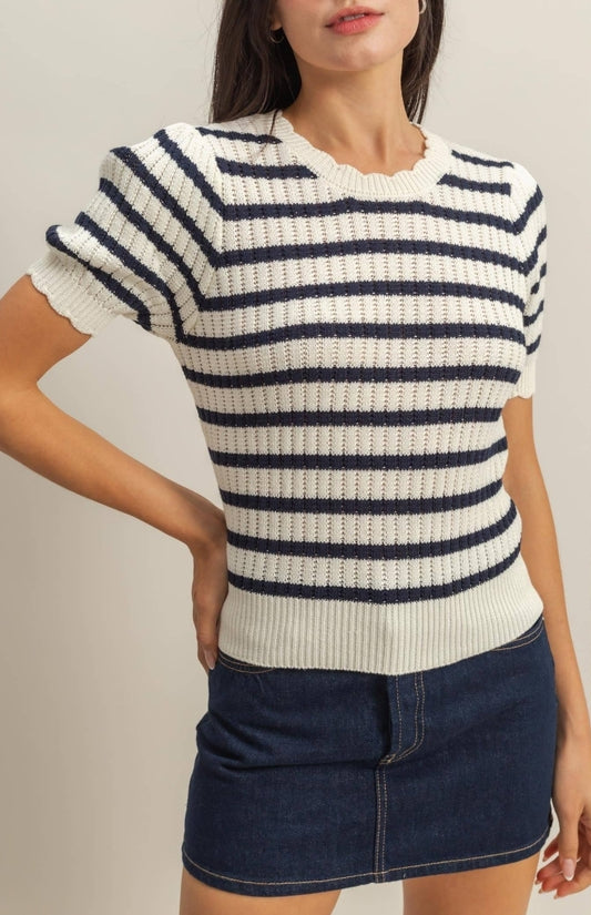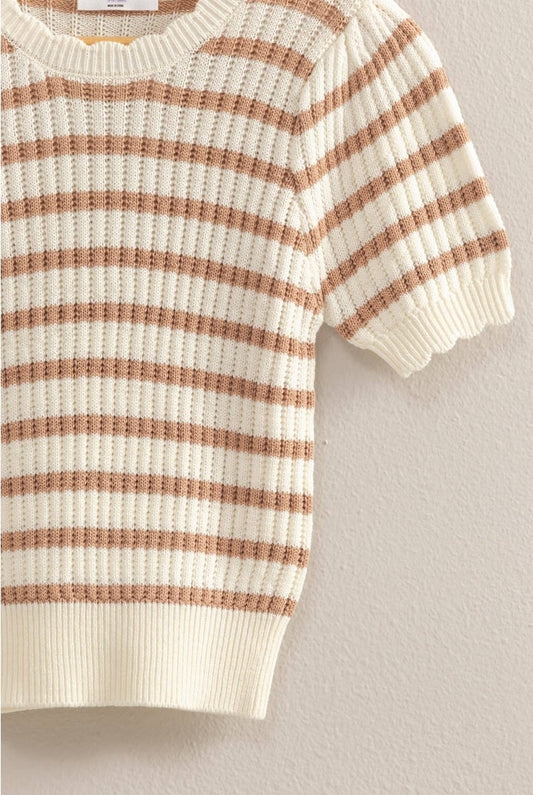 Floral Print Striped Patchwork Collared Short Sleeve Blouse