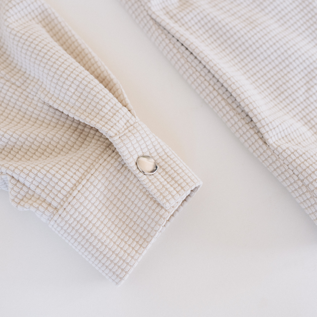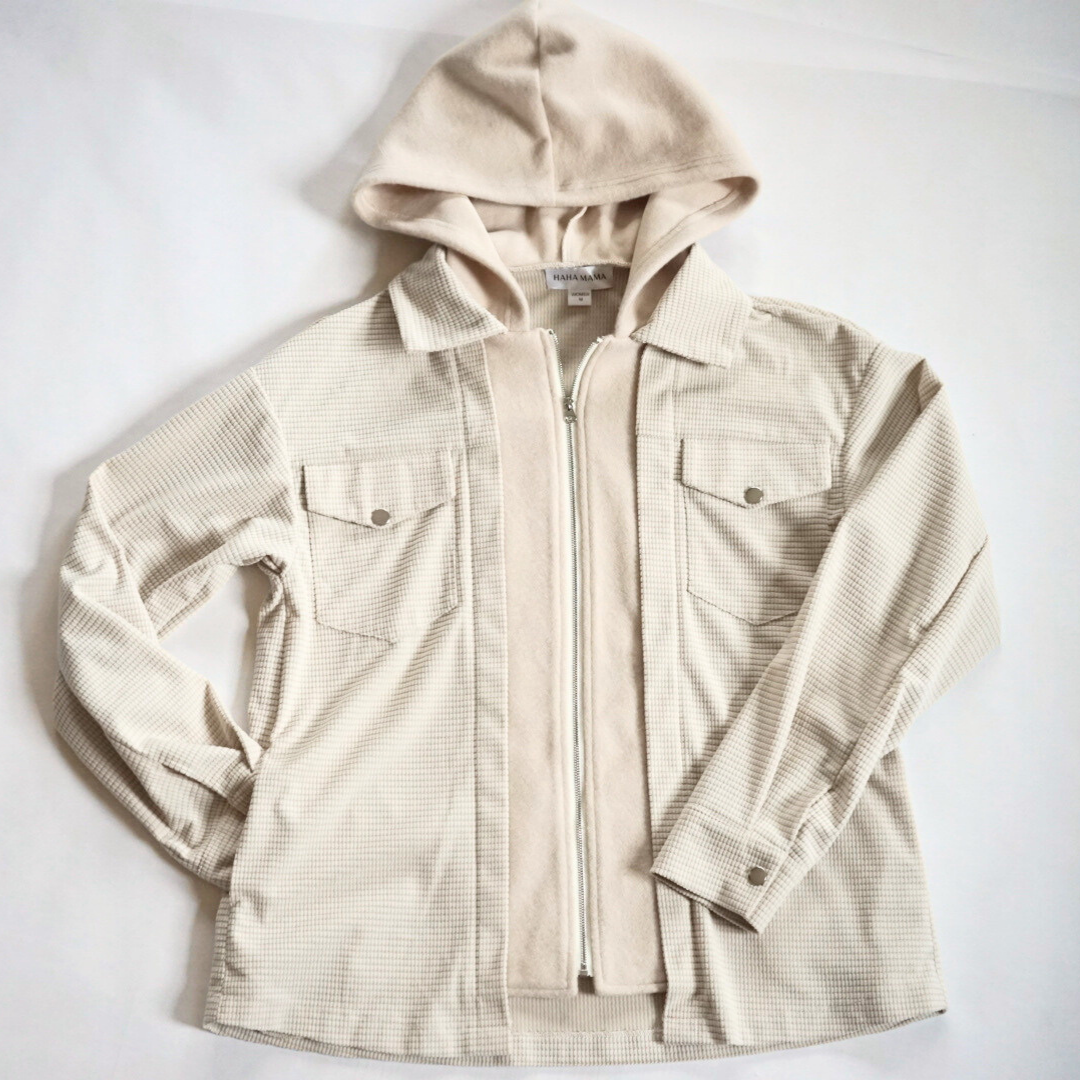 Textured Khaki Jacket has a neutral design features silver hardware and side pockets. Coordinate your wardrobe with a style you will love and want to wear! Fit is looser to keep you comfortable when layering.